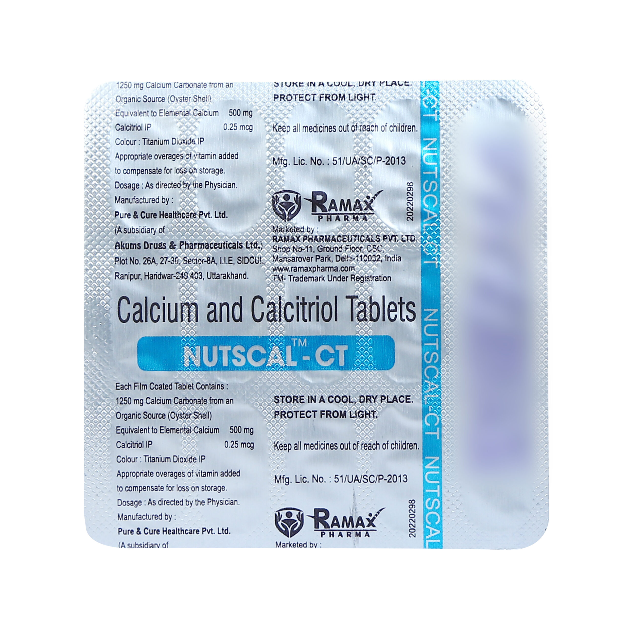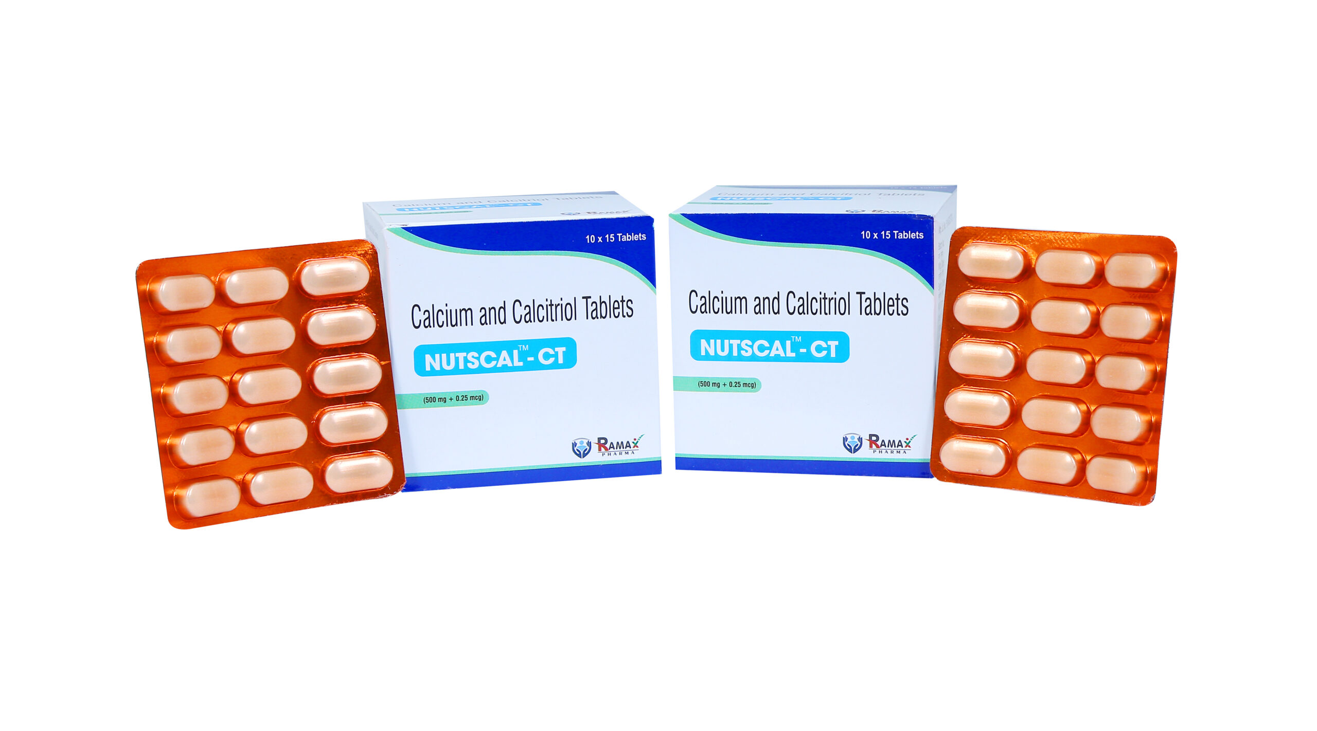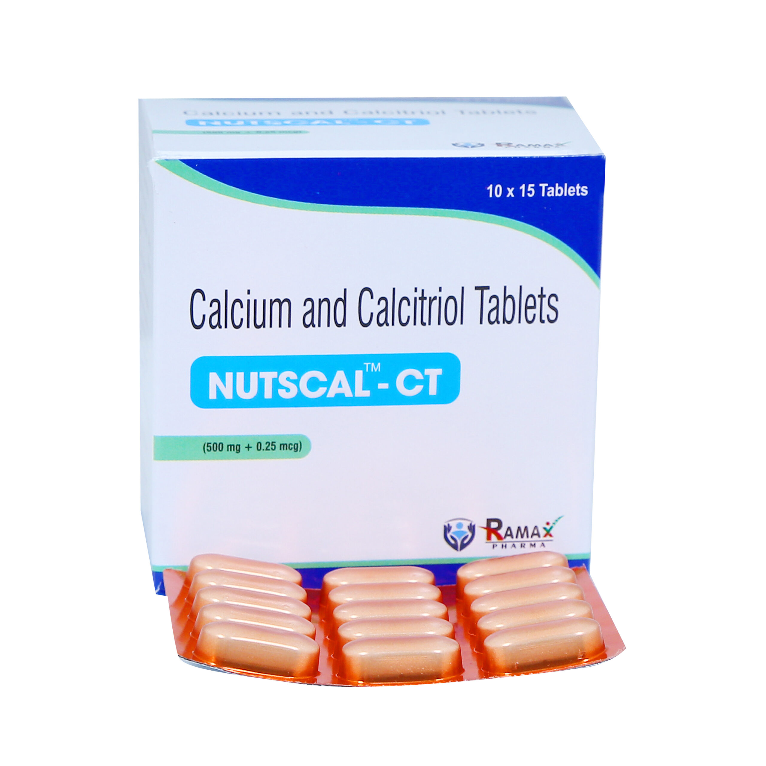 NUTSCAL-CT Tablet is a combination of Calcium and Vitamin D3 for Calcium and Vitamin D deficiencies. It bridges nutritional gaps which are not fulfilled with diet alone and provides necessary supplements, the body needs. It fulfils the deficiency thereby preventing related diseases and supporting overall body functions, growth and health.